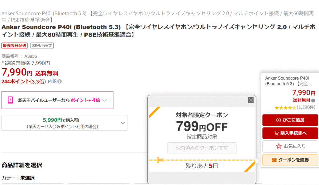 AnkerSoundcoreP40iを買うなら楽天市場がおすすめ!